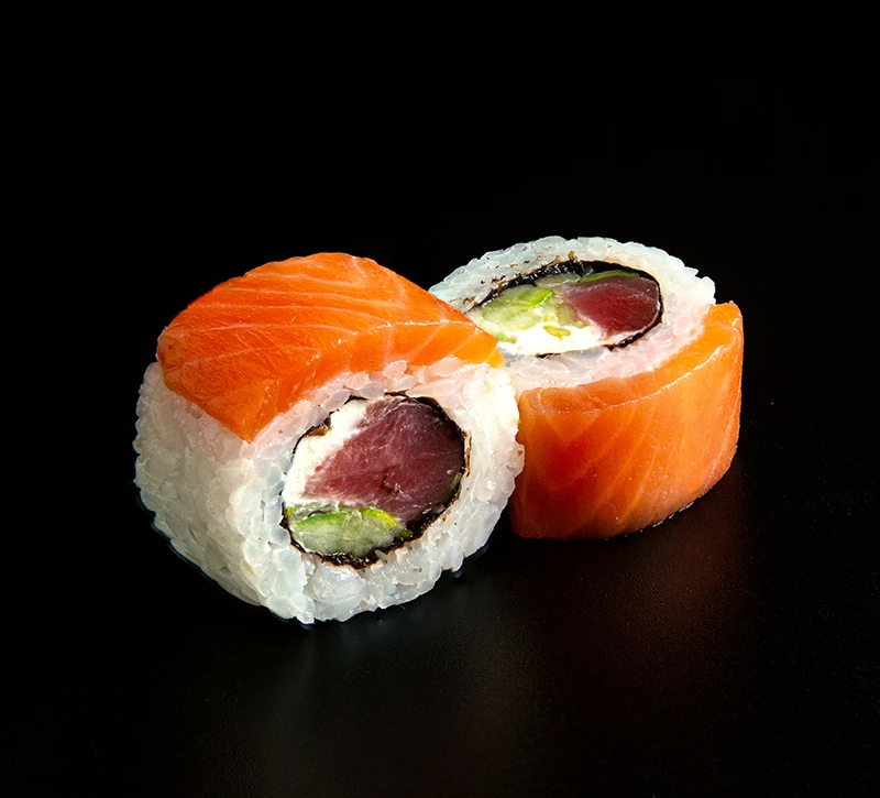 Тунец, снежный краб, сыр сливочный, огурец, соус Манго Чили (4шт), соус Сладкий Чили (4шт), рис, нори