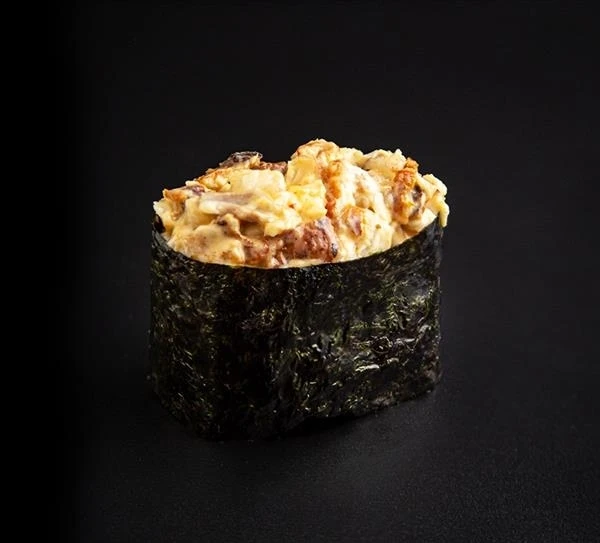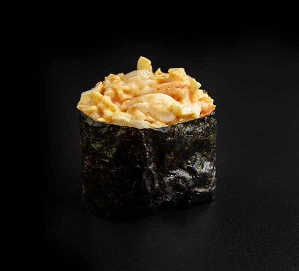 ГУНКАН КРАБ СПАЙСИ42 гСнежный краб, соус Спайси (острый), рис, нори - соевый соус, имбирь и васаби НЕ ВХОДЯТ в комплект (добавить в заказ в разделе "Допы")