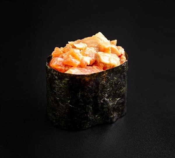 ГУНКАН ЛОСОСЬ СПАЙСИ42 гЛосось, соус Спайси(острый), рис, нори - соевый соус, имбирь и васаби НЕ ВХОДЯТ в комплект (добавить в заказ в разделе "Допы")