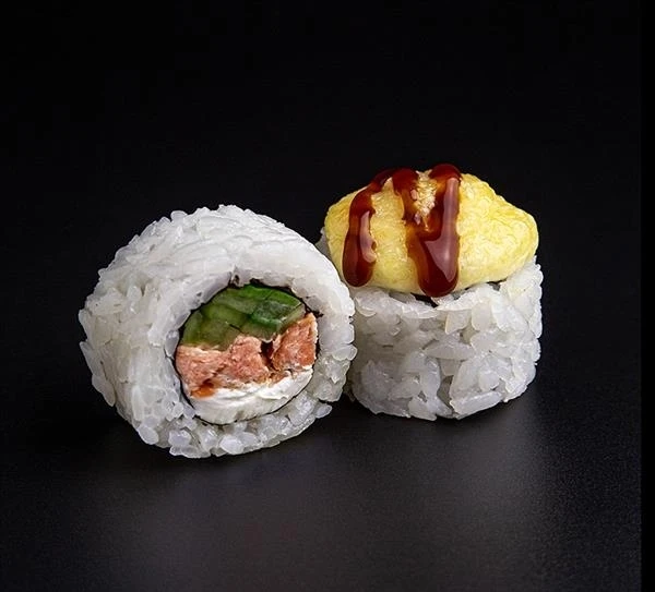 8 шт Жареный лосось, огурец, соус Сырный (майонез, сыр Пармезан), соус Унаги, рис, нори - соевый соус, имбирь и васаби НЕ ВХОДЯТ в комплект (добавить в заказ в разделе "Допы")